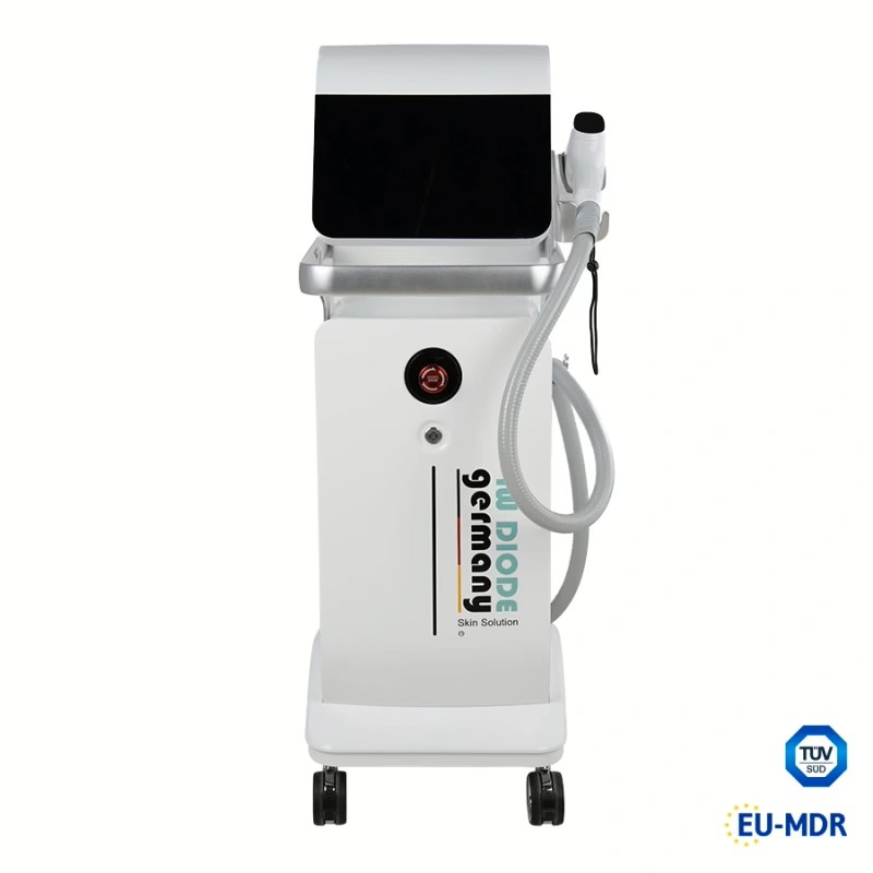Der Diodenlaser zur dauerhaften Haarentfernung arbeitet mit einer festen Wellenlänge von 808 Nanometern und wird gezielt punktuell oder leicht gleitend, basierend auf der SHR Gleittechnik über das Melanin im Haar in die Haarfollikel geleitet, um diese durch eine Erwärmung von ca. 65°C dauerhaft zu schädigen. Der SHR Diodenlaser sorgt für schnelle Behandlungsergebnisse und ist für alle Hauttypen geeignet.
